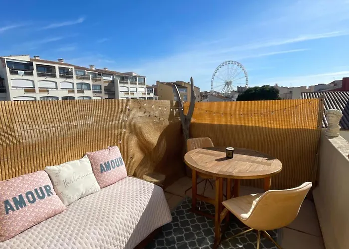 Located 1.2 km from Luna Park, the 18 m² Joli Studio Centre Port Agde is about a 25-minute walk from a top family-friendly place like Aquarium Marin du Cap d'Agde. Guests can make use of Wi-Fi for both business and leisure purposes.